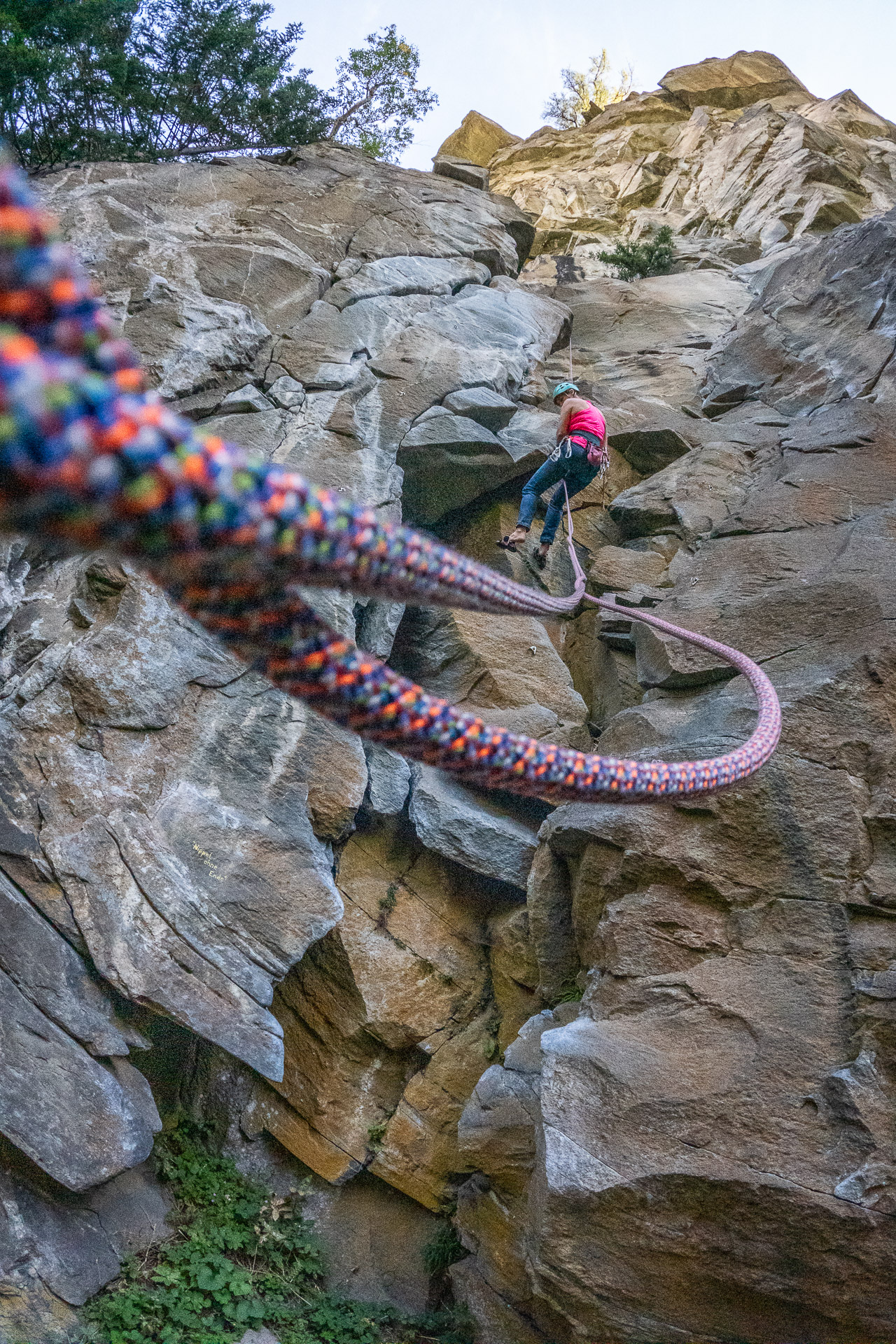 Neděli zahájíme procházkou kolem Gössfállů a potom popojedeme kousek výš do údolí a vyrážíme na obhlídku sektoru Schleierwasserfall. V nádherné žule si navzdory únavě vyzobneme aspoň tři nejlehčí cesty, které jsou ukryté příjemně ve stínu, dáme koupačku v Maltě (řece, nikoliv stavebním pojivu) a hurá domů.