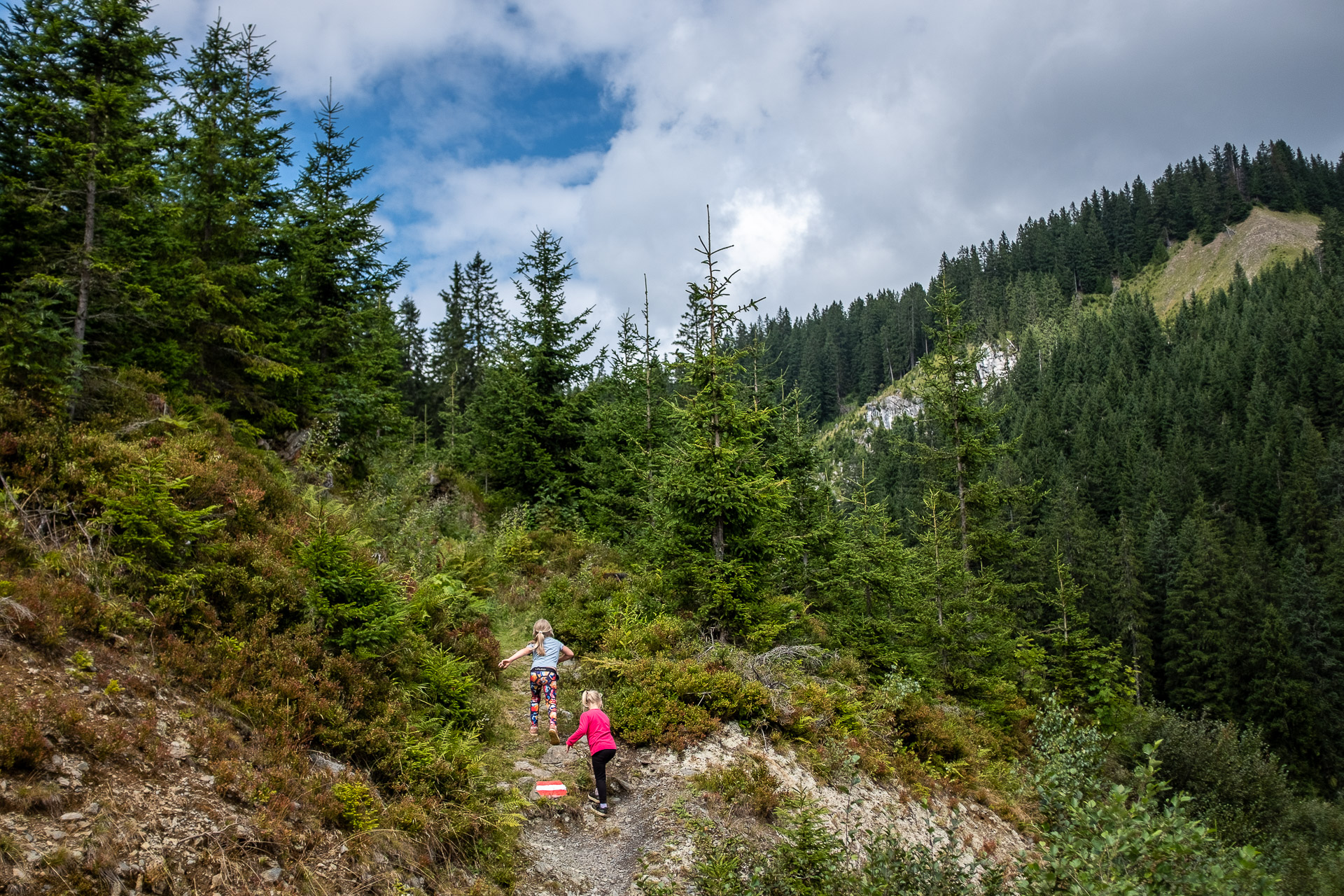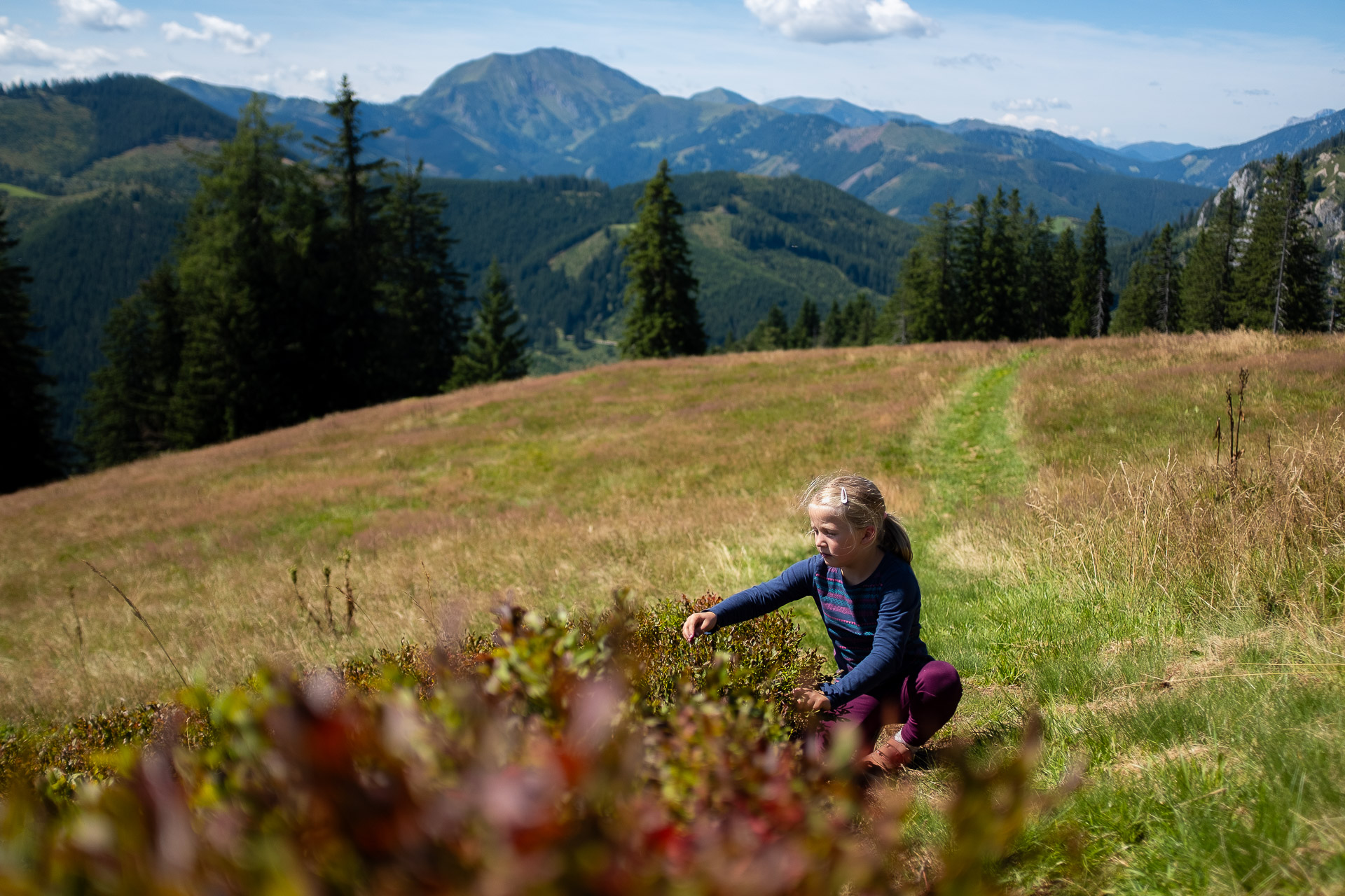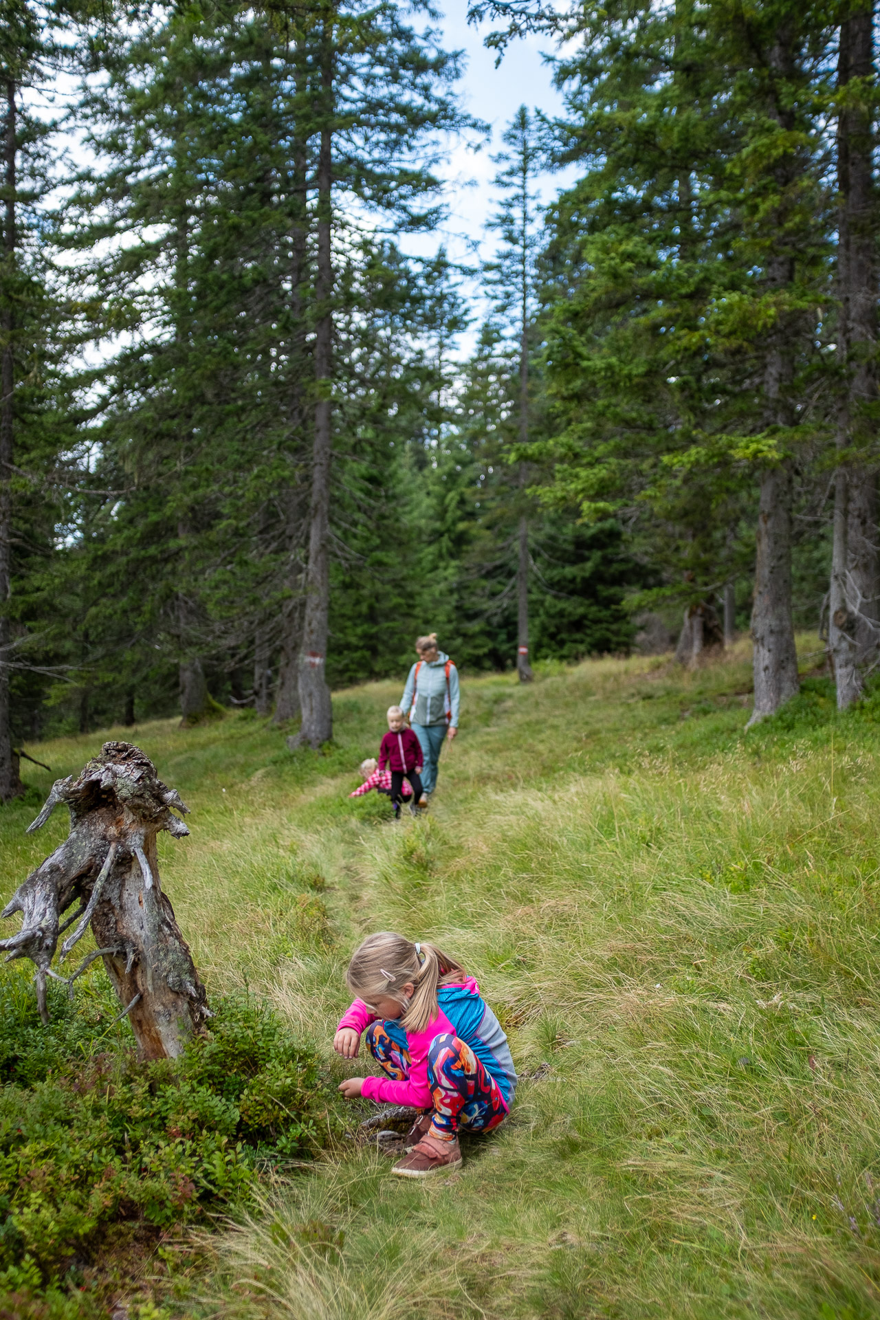 Zaparkujeme u bývalého dolu na měď (do kterého lze v případě zájmu i domluvit prohlídku) a jdeme strmě lesem směrem k sedlu Neuburgsattel. Omladinu je jako obvykle nutné náležitě motivovat – hrami, vyprávěním a když už se cítíme vyčerpaní obojím, objevují se naštěstí borůvky a zanedlouho i louky salaší Neuburgalm.